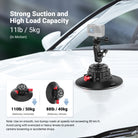 - Excellent Load Capacity- The suction cup mount can support devices up to 11 lbs (5 kg) in dynamic environments (on smooth, non bumpy roads at speeds not exceeding 80 km/h). For static use, it holds up to 132 lbs (60 kg) horizontally and 110 lbs (50 kg) vertically, making it an ideal choice for road trip POV video recordings