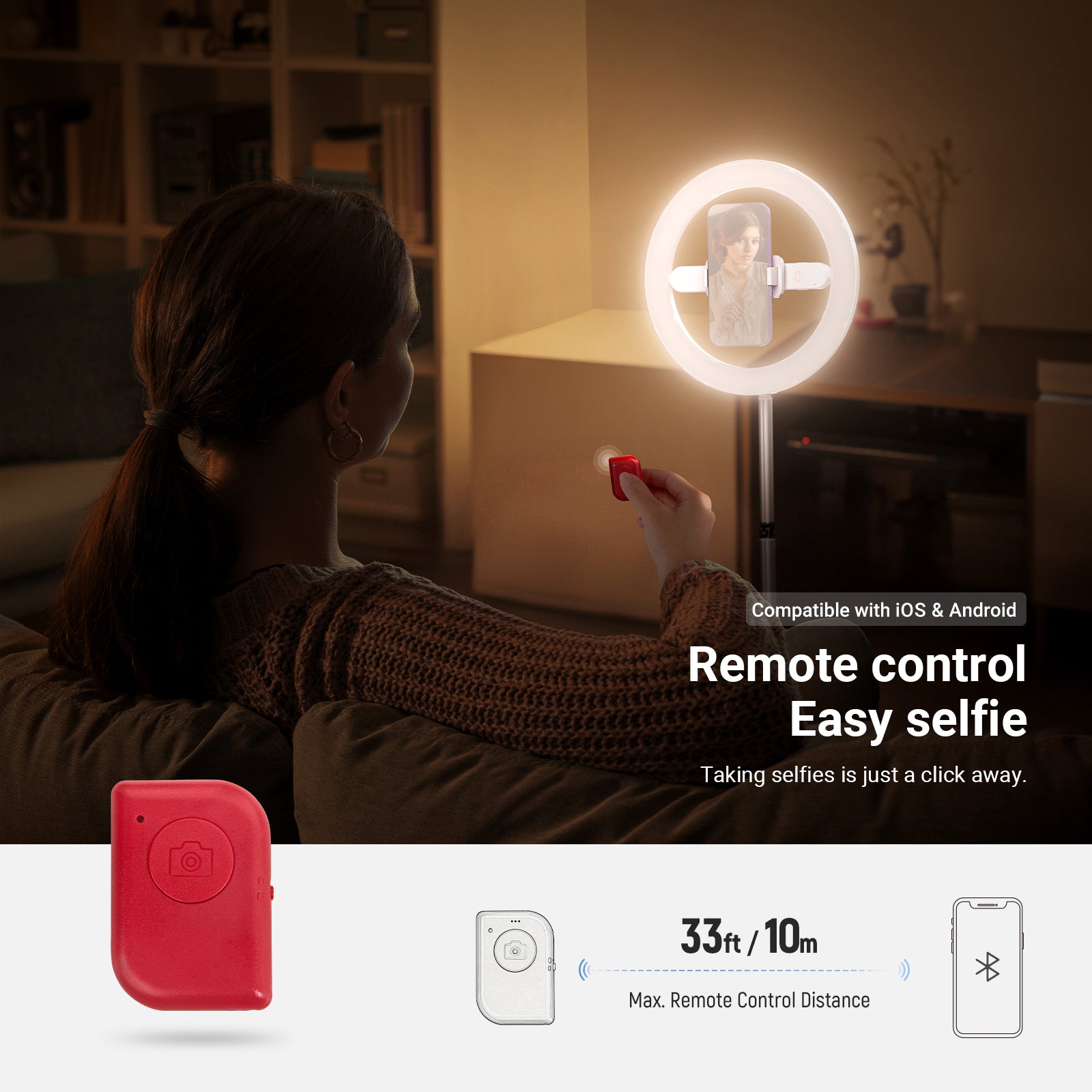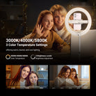 • 3 Color Modes with 5 Brightness Levels- With 144 warm & cool LEDs, this small LED circle ring light delivers up to 830lux/0.5m with CRI85+, offering warm, neutral, and cool lighting with 5 brightness levels to flatter various skin tones. Circular design for soft, even glow to enhance eye sparkle and reduce harsh shadows, as key/fill light for YouTube films TikTok social media vlog, makeup artist video recording, videography podcast, streamer live streaming, selfies, etc