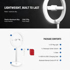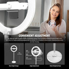 • Telescopic Desk Stand & 180° Tilt- The table halo selfie ring light includes an adjustable desktop mount, providing professional lighting height up to 32.3"/82cm for flexible positioning, ideal for desktop Zoom meetings call/video conferencing on laptop/computer/monitor/webcam. The light head tilts 180° backwards, enabling upward lighting from a lower angle