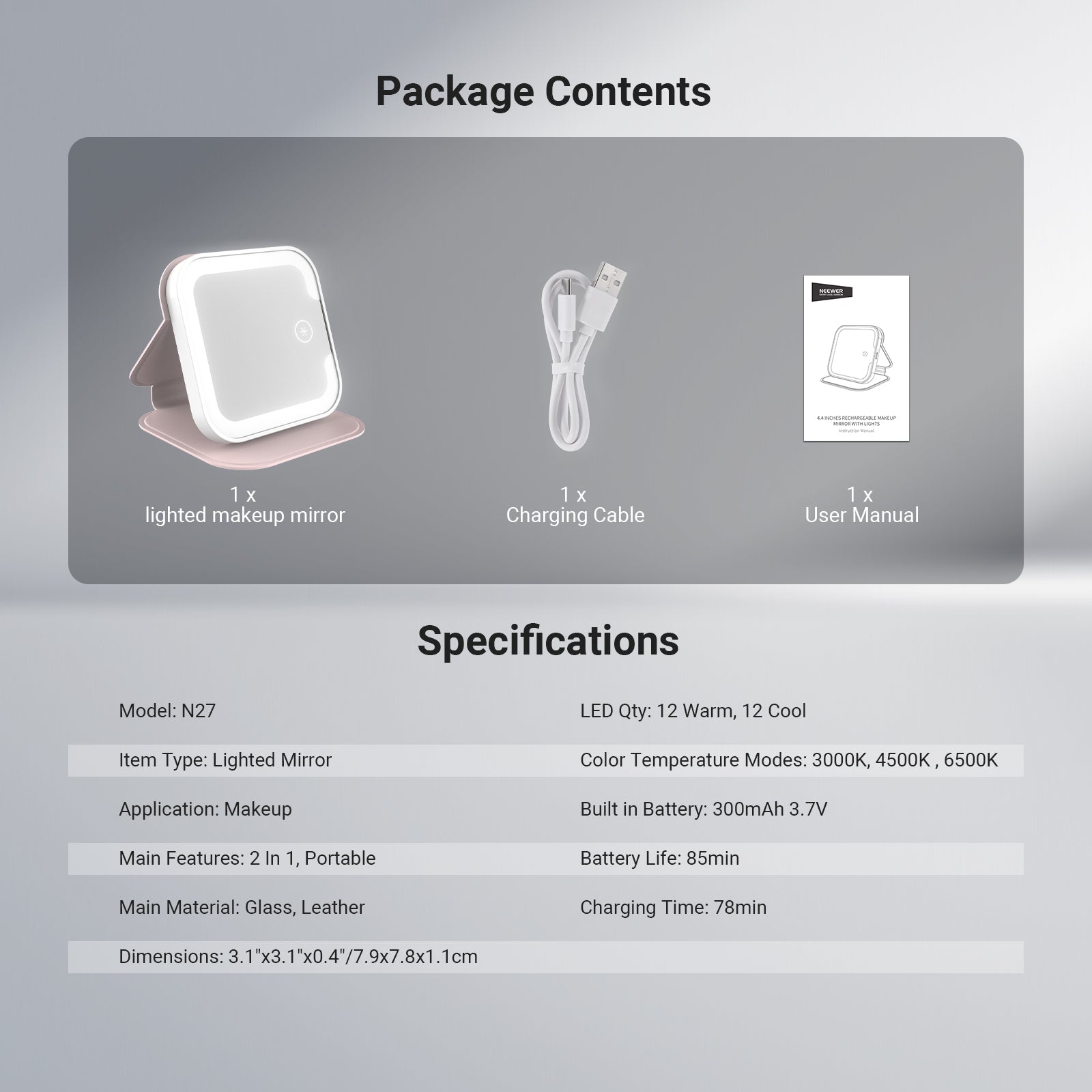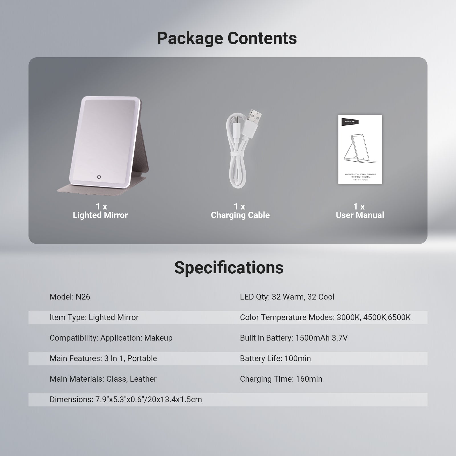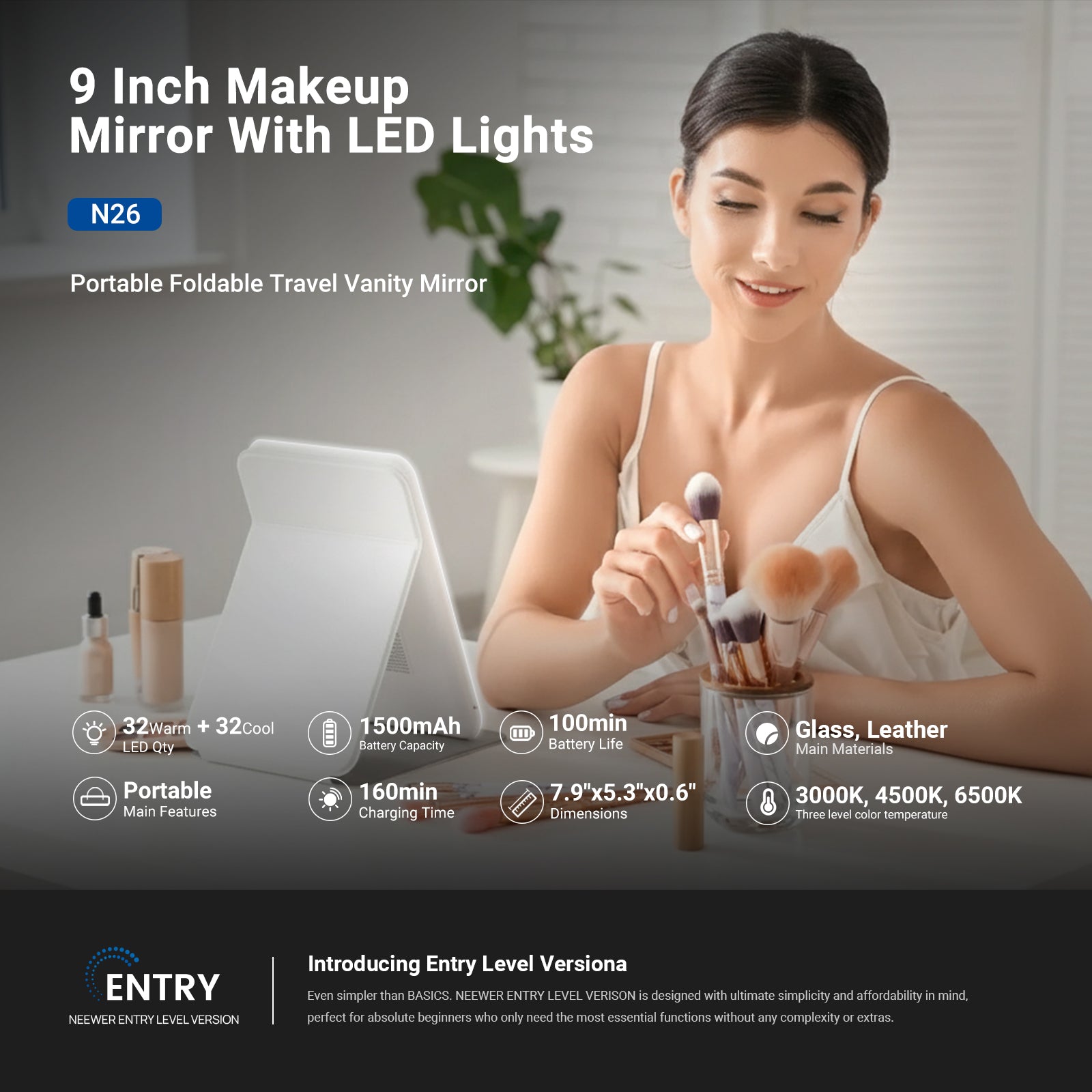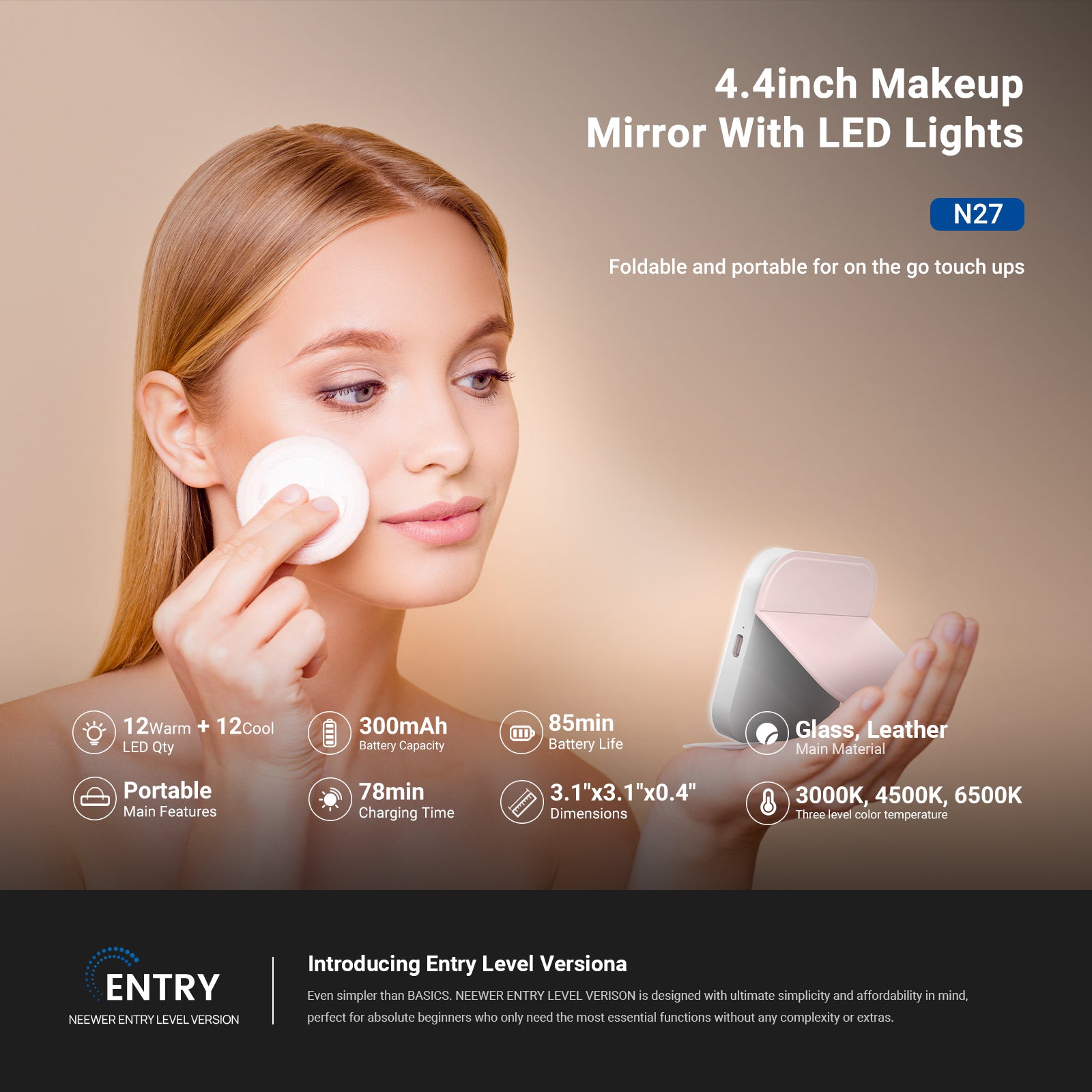 - 3 In 1- NEEWER N27 combines a travel make up mirror with a LED light, ideal vanity mirror for daily on the go touch ups, eyelash plucking, and lash application. Essential/must have lighting accessories for women, makeup artists, content creators, and influencers