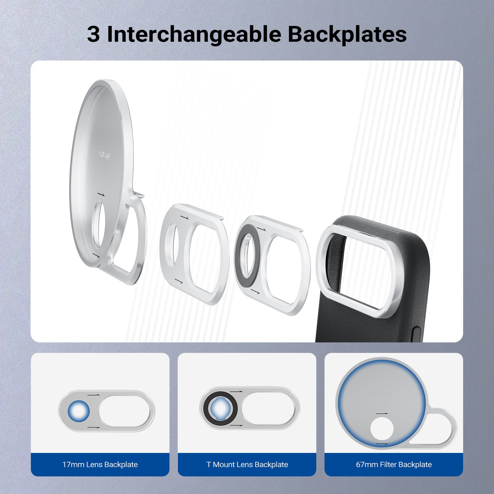 - 17mm Lens Backplate- Suits all NEEWER 17mm threaded phone lens attachments. Note: Lenses sold separately. Remove the mounted lens before detaching the backplate