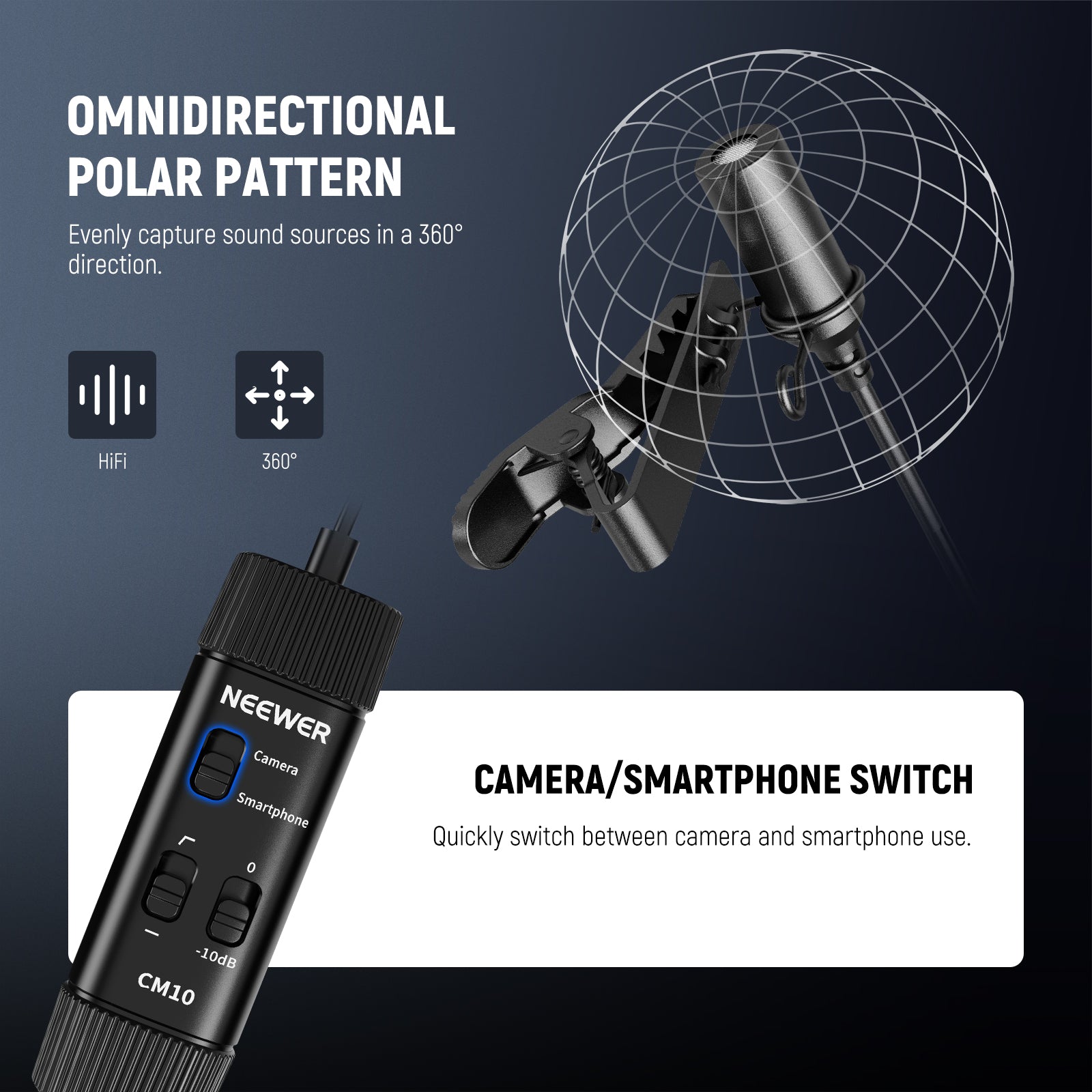 NEEWER CM10 Plug & Play 3.5mm TRRS Lavalier Microphone for Camera/Smartphone