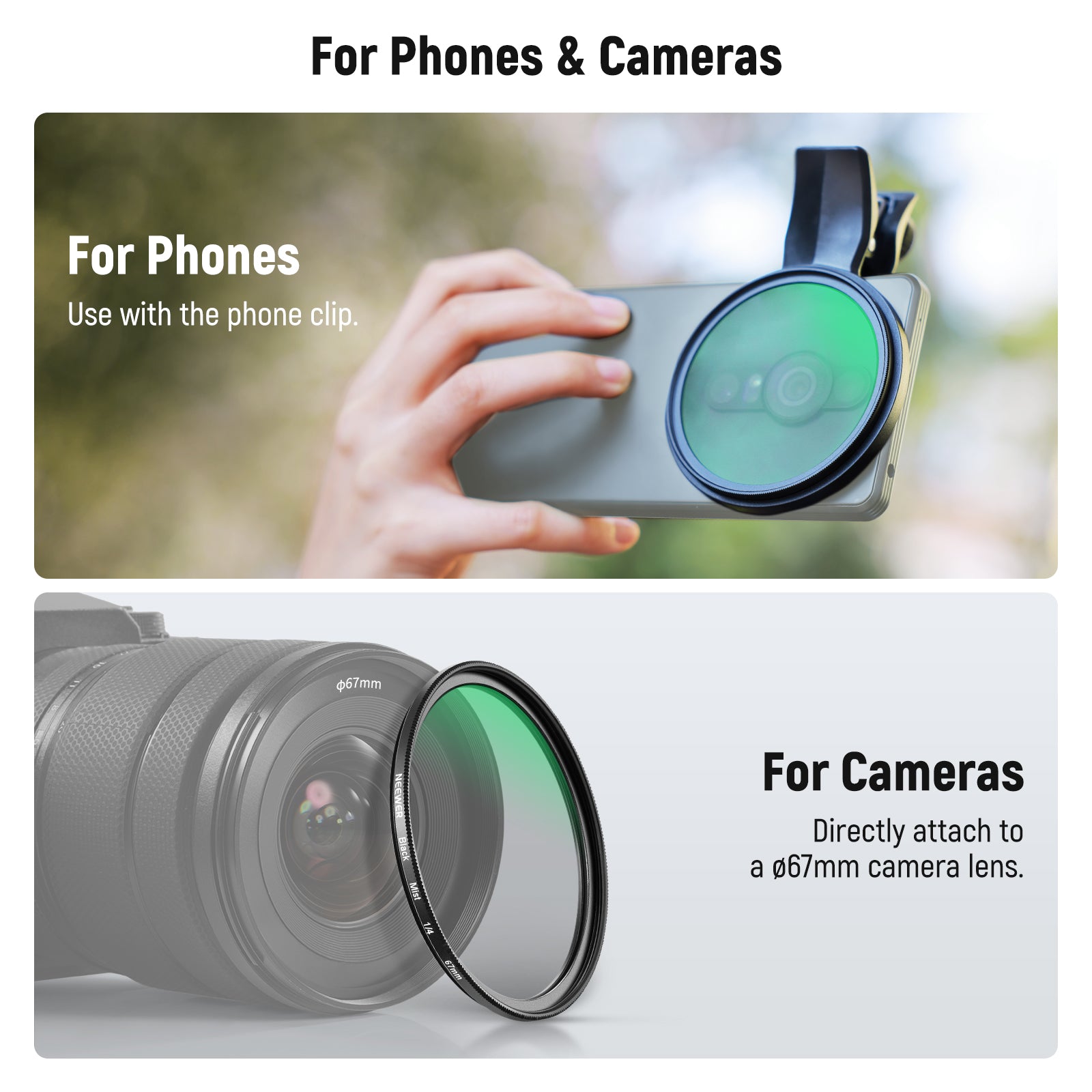 NEEWER FL-B24/FL-B20 67mm Black Diffusion 1/4 Filter with Clip For Smartphone