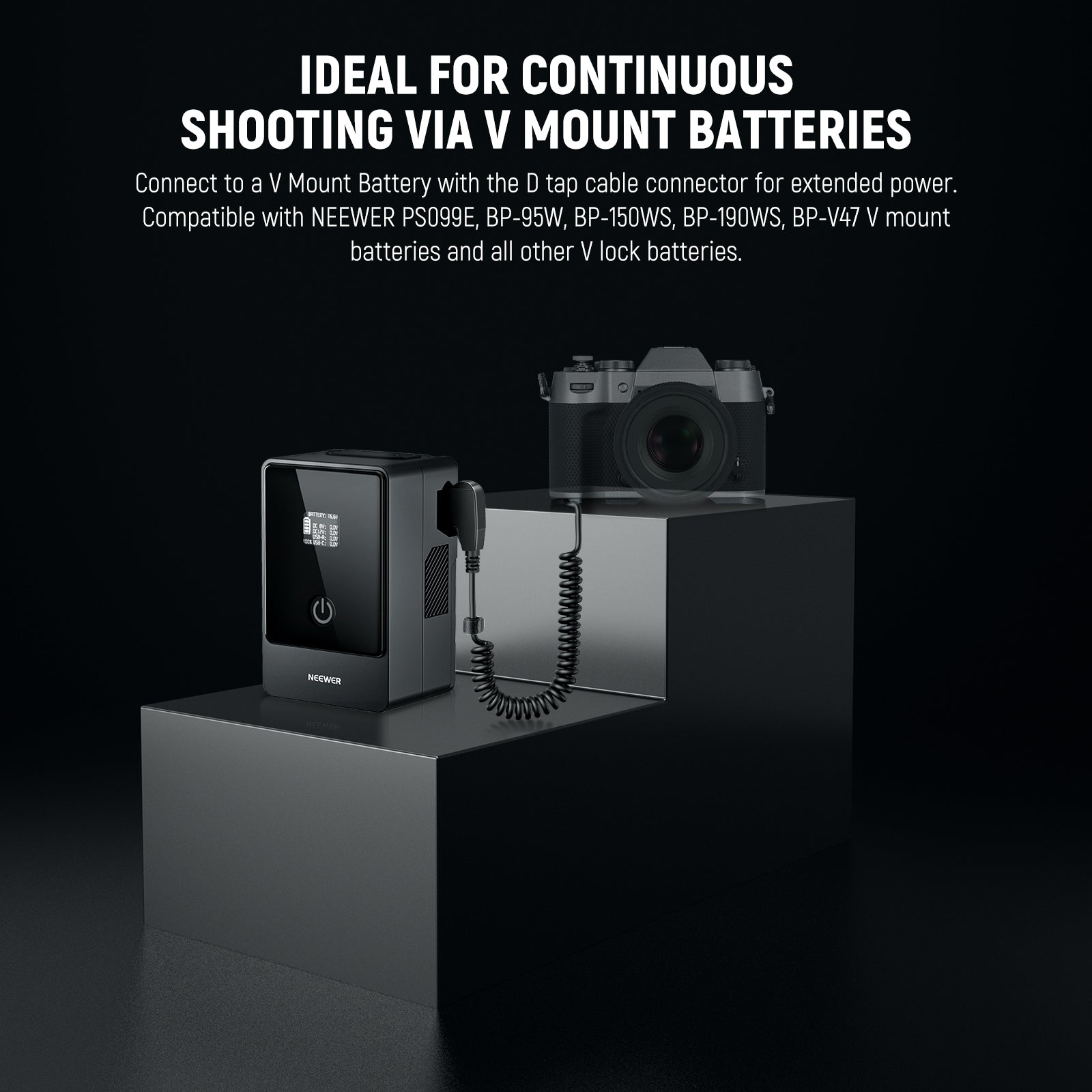 NEEWER mini V-mount batteries provide a lightweight yet powerful alternative to traditional full-size batteries, eliminating the trade-off between power and portability. Weighing significantly less, they allow photographers and videographers to carry essential power without straining their shoulders or compromising mobility. Despite their compact size, they deliver consistent high-voltage output and extended runtimes, easily powering mirrorless cameras, LED lights, and external monitors for hours. This makes them ideal for long shoots, outdoor events, or any situation where reliable, long-lasting power is essential.