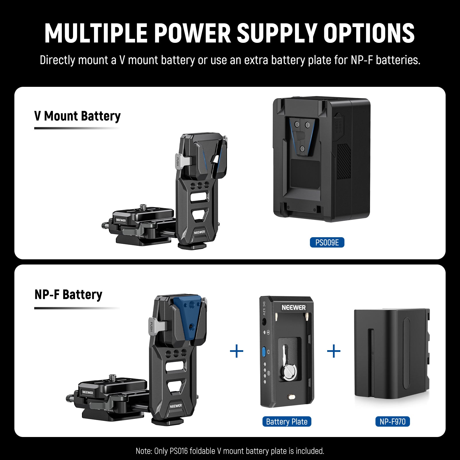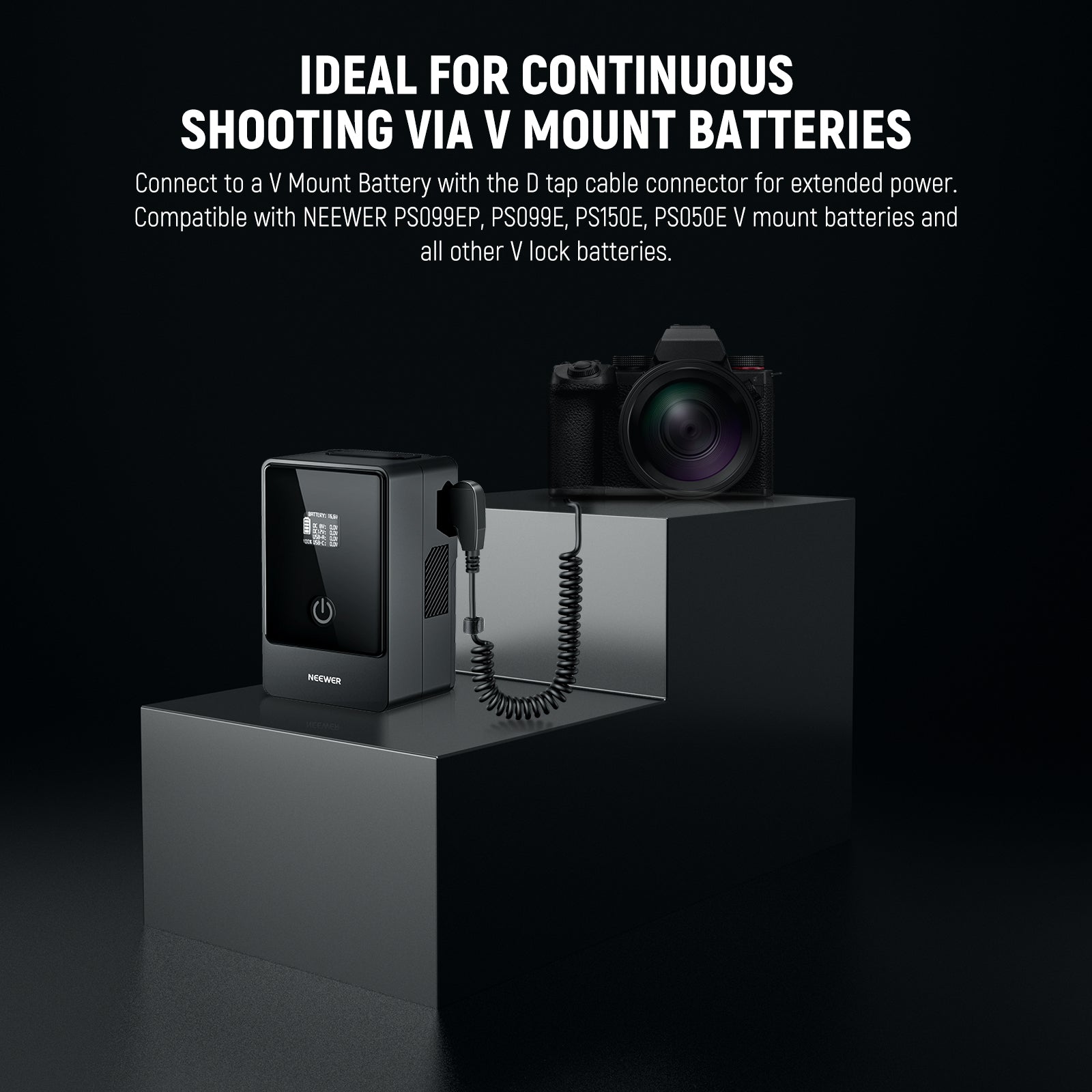 NEEWER offers V-Mount batteries for you. These compact yet high-capacity V-Mount batteries are ideal for continuous video lighting and photography. Most V-Mount batteries are airline-friendly and never add bulk to your travel. In addition, NEEWER also provides V-Mount battery plates and chargers.