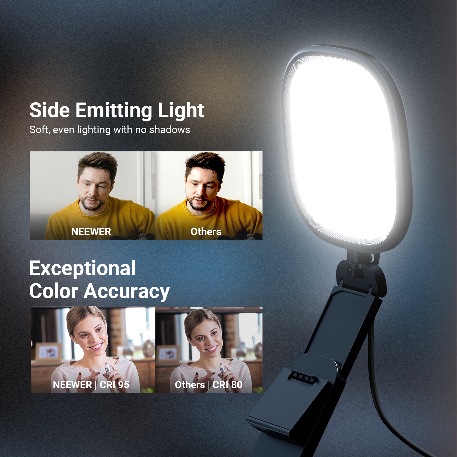 NEEWER video conference lighting is built to deliver clean, professional illumination for modern work-from-home and online communication setups. Designed to reduce harsh shadows and unflattering glare, these lights help you appear clear, natural, and well-lit on camera—whether you’re attending virtual meetings, hosting webinars, or giving online presentations.