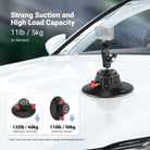 - Excellent Load Capacity- The suction cup mount can support devices up to 11 lbs (5 kg) in dynamic environments (on smooth, non bumpy roads at speeds not exceeding 80 km/h). For static use, it holds up to 132 lbs (60 kg) horizontally and 110 lbs (50 kg) vertically, making it an ideal choice for road trip POV video recordings
