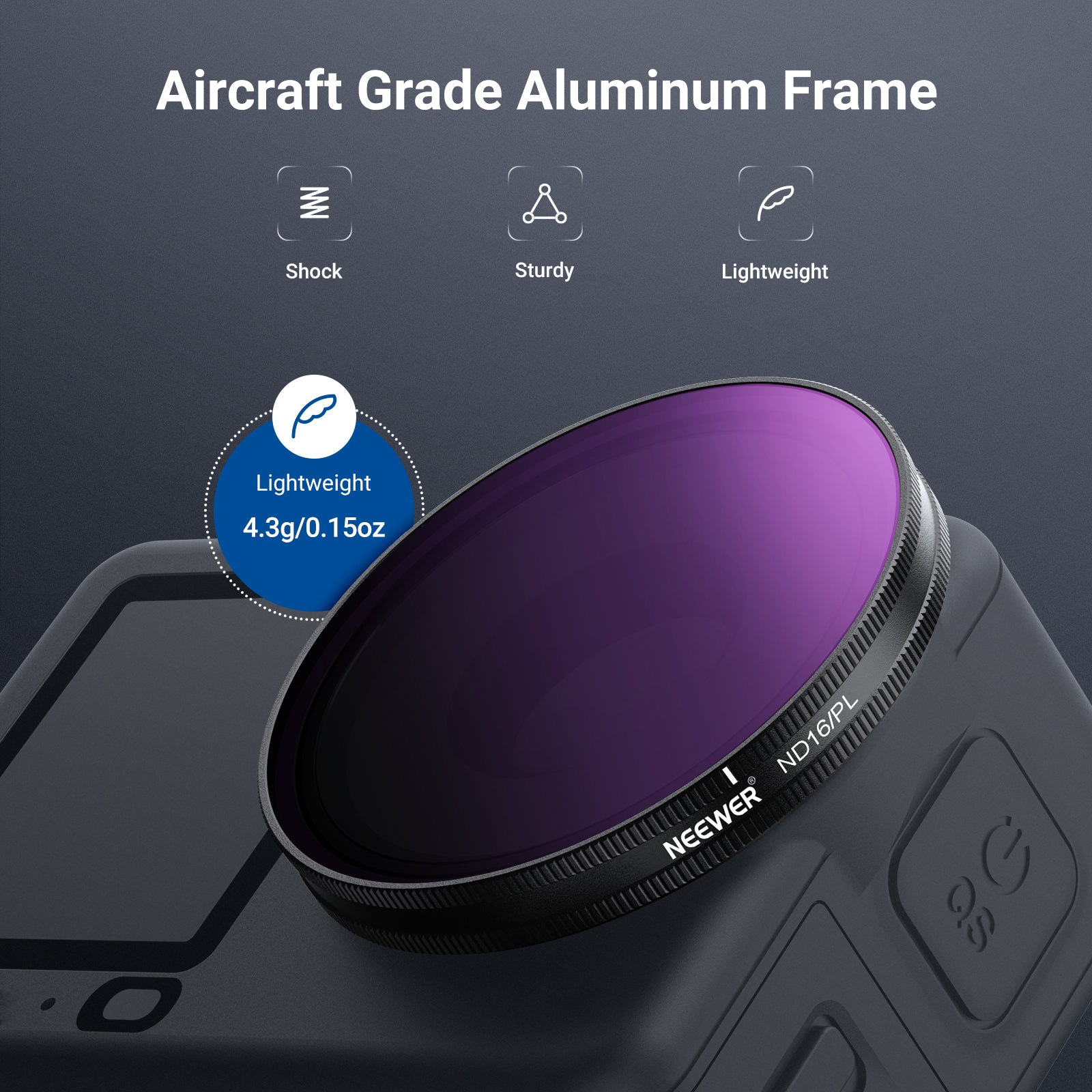 NEEWER offers DJI lens filters that are ideal for professional aerial photography and videography. With the help of these DJI camera filters, you can capture sharp photos in bright lighting and create motion blur in dynamic scenes. Choose a DJI lens filter that is compatible with your action camera model.