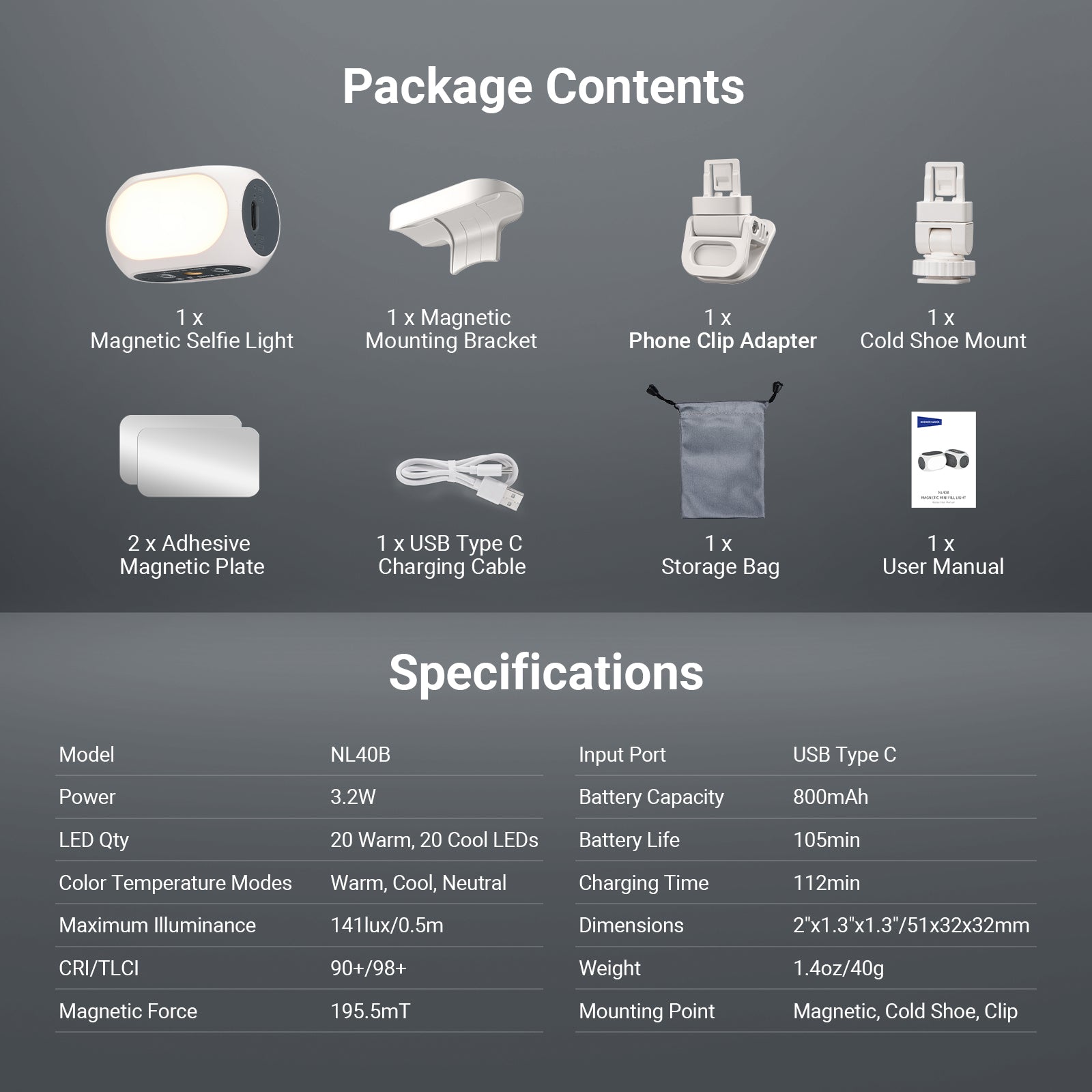 Product overview of the NEEWER NL40B Magnetic Mini Fill Light for Phone & Camera