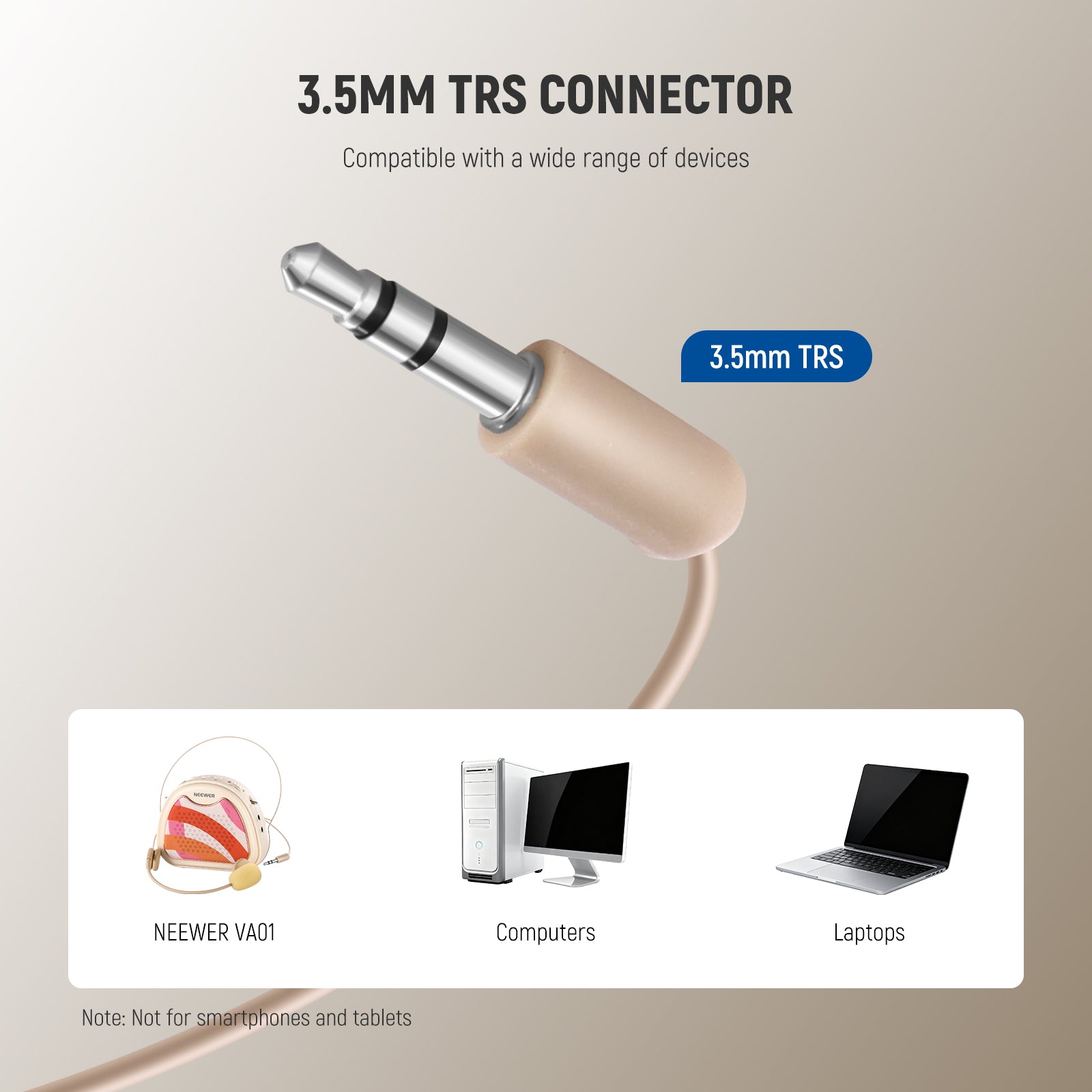 - 3.5mm TRS Connector- With an internationally universal 3.5mm TRS plug, this mic headset is compatible with NEEWER VA01 portable voice amplifier microphone with speaker set, computers, laptops, and other devices with a 3.5mm TRS audio jack. Note: Not for smartphones and tablets