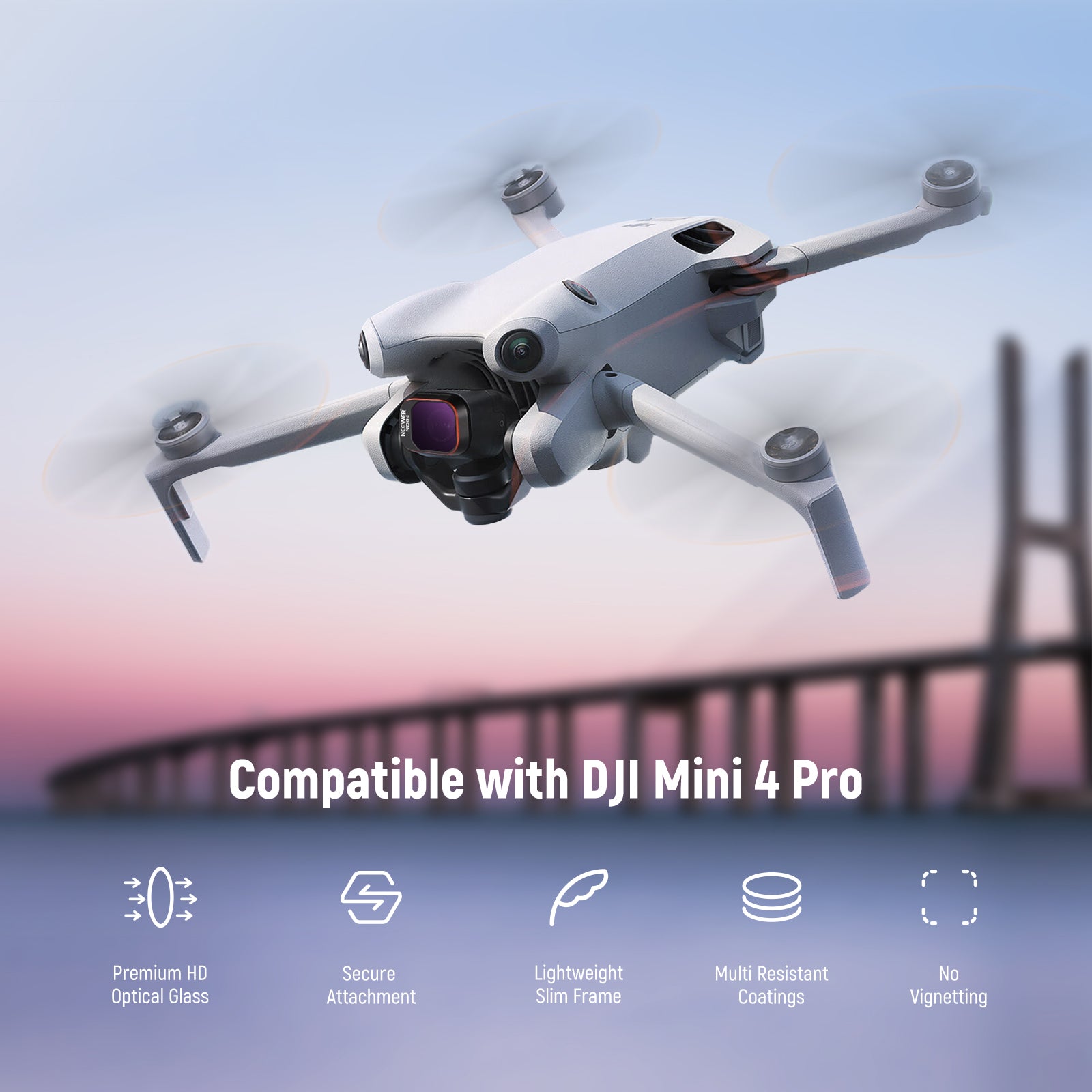 - Dedicated to Mini 4 Pro- Introducing the latest must-have ND & CPL filter set, compatible with DJI Mini 4 Pro. This NEEWER filter kit boasts top notch HD glass that ensure crystal clear imaging during aerial shooting. It's a game changer for drone enthusiasts looking to optimize shutter speeds, minimize glare, enrich colors, and achieve impeccable exposure in varying weather conditions