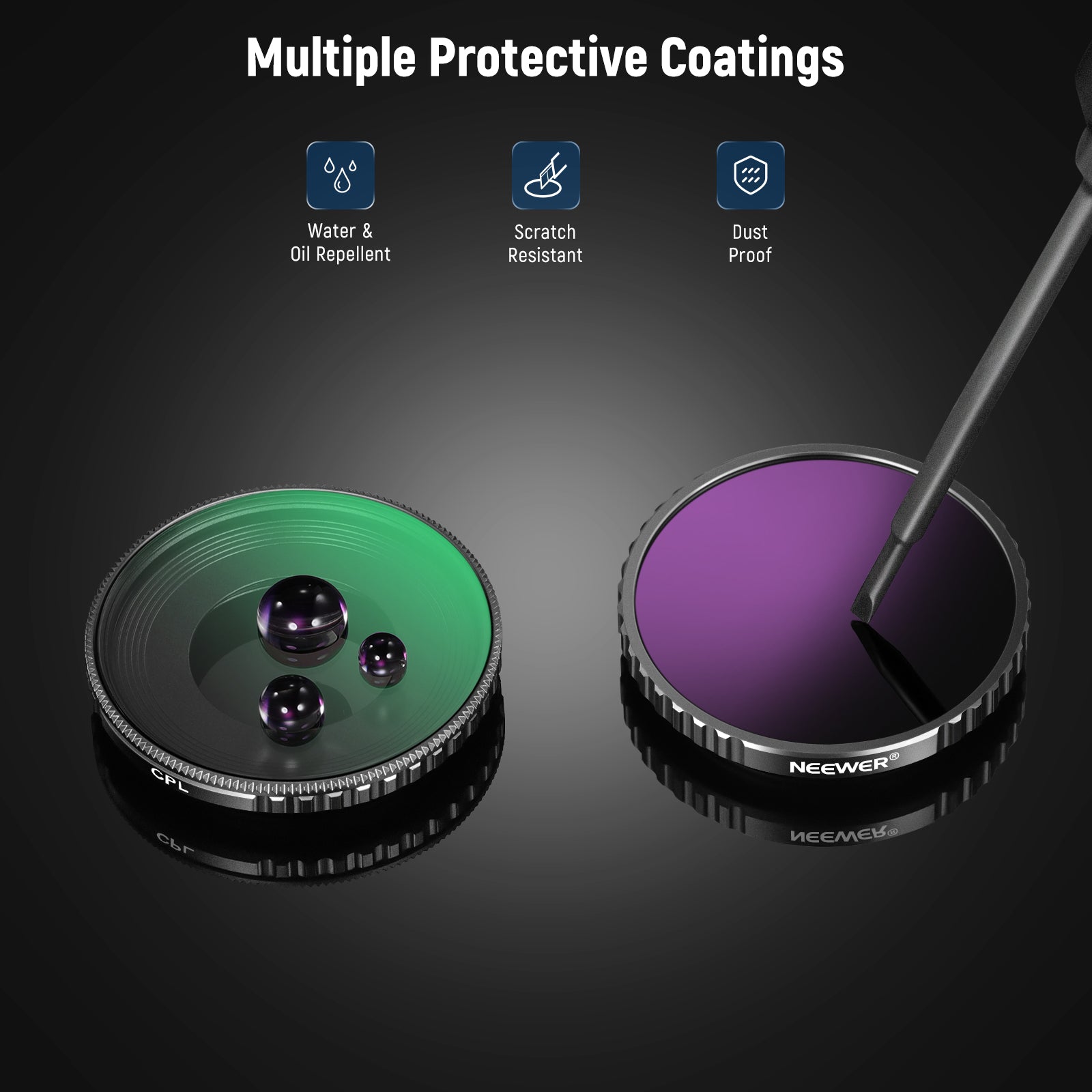 - Both Side Multi Layer NANO Coated- With 30 layers of multi functional NANO coatings on both sides of the HD optical glass, these filters are water repellent, scratch-resistant, and oil-proof