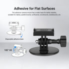 - Adhesive for Flat Surfaces- The adhesive camera mount features a larger base for enhanced stability, suitable for tables, paddle boards, surfboards, snowboards, skateboards, and more. It also enables 180° tilt for POV shots