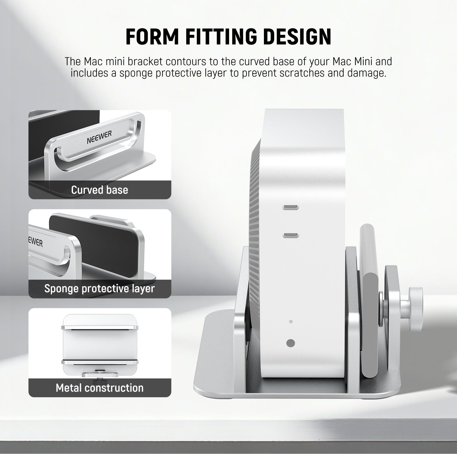 - Snug Fit- The Mac mini holder fits the curved bottom of your Mac Mini, with a sponge protective layer to prevent scratches and damage