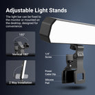 - Flexible Use- The LED desktop panel light with 7.9"-11" stand for phone can be attached vertically and horizontally and tilts 180°. Includes clamps to clip the lights on desk computer, monitor, laptop, webcam, delivering soft lighting for Zoom calls, video conferencing, podcast, gaming, and more