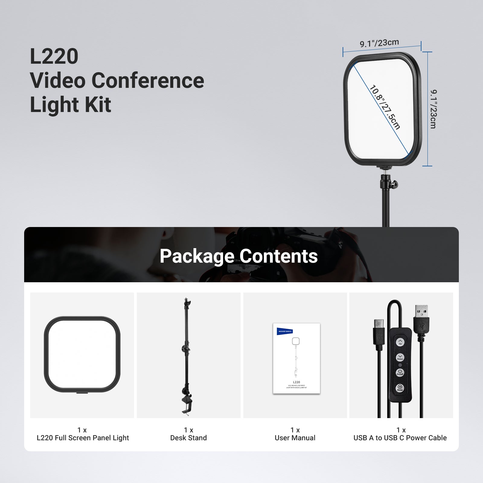 - Adjustable Lighting- The desktop video light with 220 bi color LEDs offers up to 816lux/0.5m, 3 CCT modes & 10 dimming levels to meet needs from laptop video conferencing to selfies & video recording as content creator/influencer/makeup artist must haves & essentials