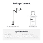 - Magnetic Phone Holder Stand with Flexible Arm- The cell phone holder stand for desk magnetically attaches your smartphone to the desk, and features a flexible arm and a 360 degree rotating ball head for easy positioning