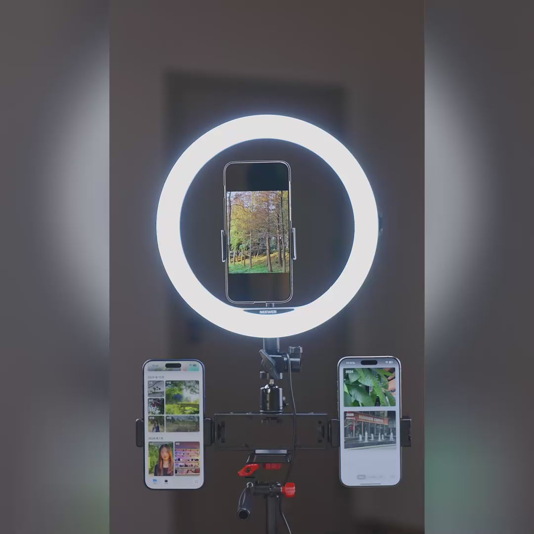 - Streaming on Multiple Platforms- With 3 cell phone holders, this tall standing large ring light with stand lets you mount up to 3 phones simultaneously for streaming on multiple platforms, for YouTube TikTok Instagram. Easily attach them to the ring light or the extension mounting bracket via cold shoes or 1/4" screws. Achieve multi angle shooting for livestreams, vlogging, and creative content films as social media creator essential and streamer influencer must have