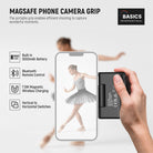 - 18W Magnetic Fast Charger- This fun shot magnetic grip for phone with 5000mAh high capacity battery also functions as portable wireless charger that offers up to 18W fast charging for your smartphone to support extended shooting sessions on the go, only compatible with iPhones that are compatible with MagSafe charging, for Mag safe 16 15 14 13 12 series. Snap on phone as content creator essential phone camera photography accessories and influencer must have gear