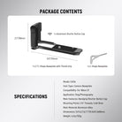 - Built in Thumb Grip & Handle- The mounting plate is built with an ergonomic thumb grip for improved stability and comfort when holding the camera with one hand. Additionally, the handle features a nonslip rubber coating to prevent slipping during handheld shooting