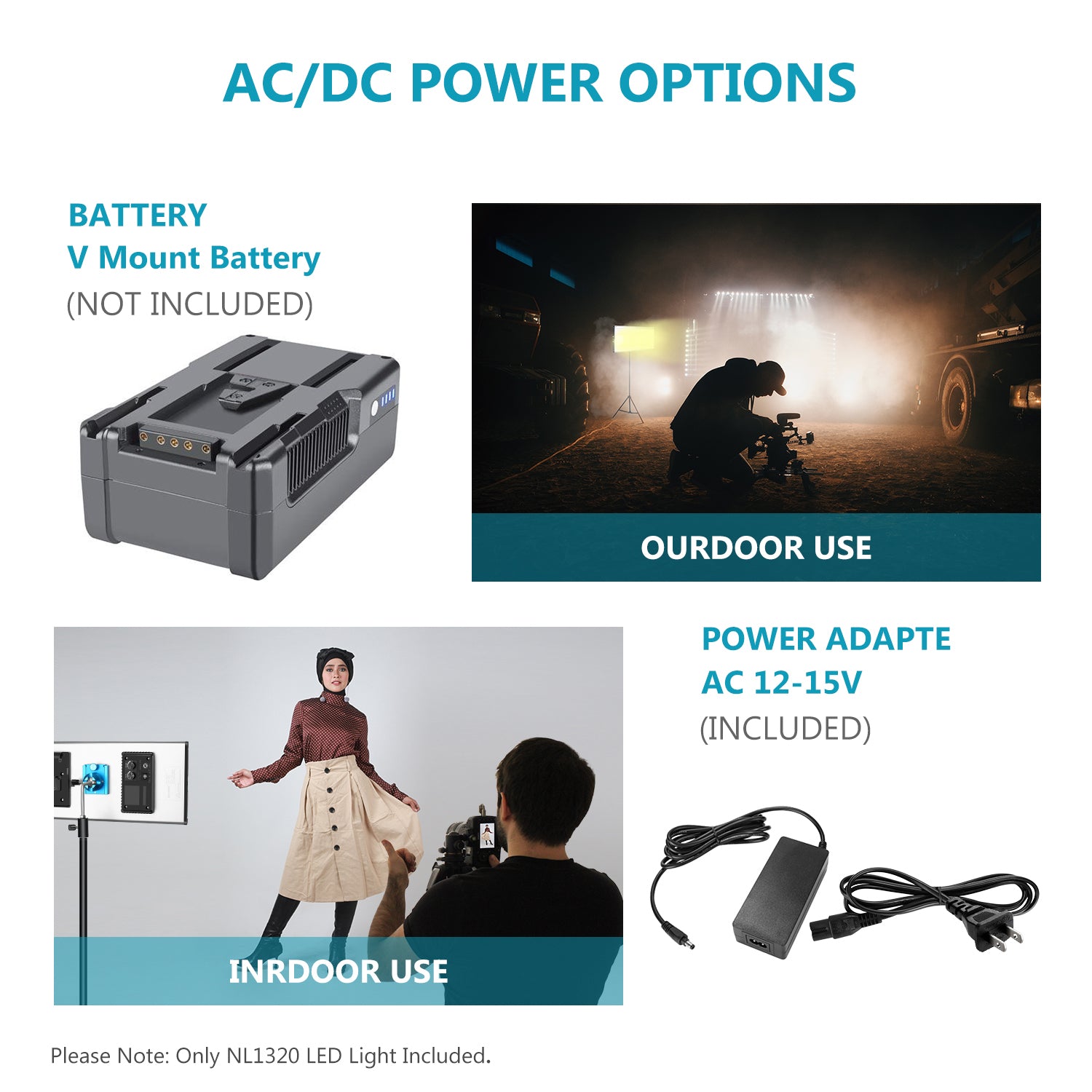 - AC/DC POWER OPTIONS: Power with 12-15V DC Adapter (Included) for indoor shooting or a V-Lock Mount external battery for wireless outdoor shooting operation (Battery NOT INCLUDED and sold separately)