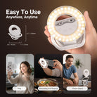 - 4 Segment Foldable & 800mAh battery- The mini ring light operates for up to 130min continuous lighting at 100% brightness. The four fold design doesn't block the camera and works as a desk phone mount & holder stand compatible with iPhone for recording, filming & video calls on the desktop