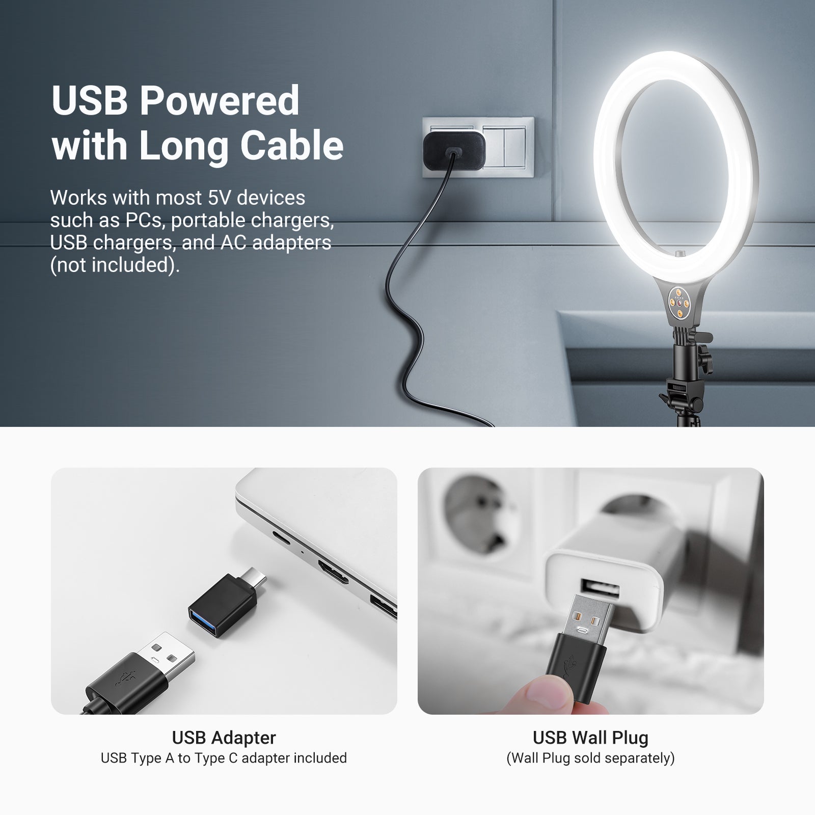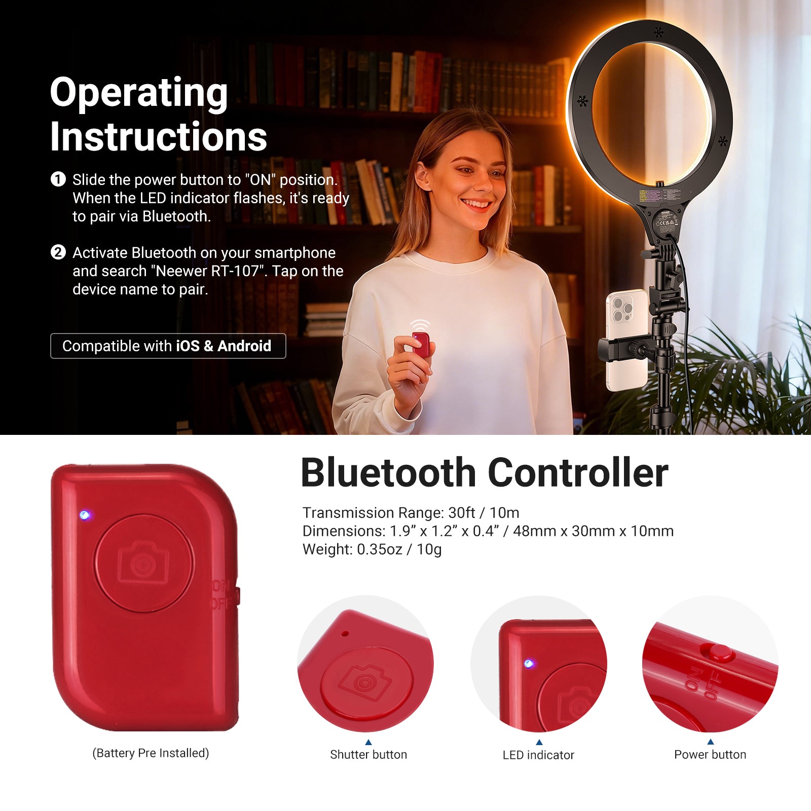 - Ring Light Diameter: 10.5"/26.6cm