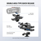 • Dual Arca Type Quick Release- An Arca type quick release plate with 1/4" screw ensures fast and secure camera mounting. The rail slider base easily connects to Arca type tripod head accessories for stable shooting. The bottom 3/8" thread and a 3/8" to 1/4" screw adapter accommodate a wide range of camera stands and tripods