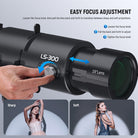 - Adjustable Focus for Creativity- Rotate the focus knob counterclockwise, then slide the lens forward or backward to adjust focus for sharp and diffused projections. Perfect for portraits, product photos, weddings, stage photography, art projects, filmmaking, commercials, and video recording as content creator essential photography gear and influencer must have lighting accessories