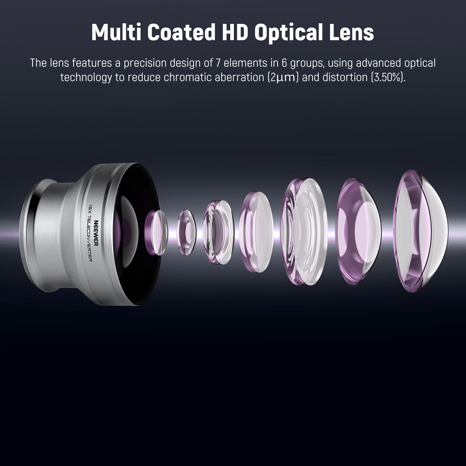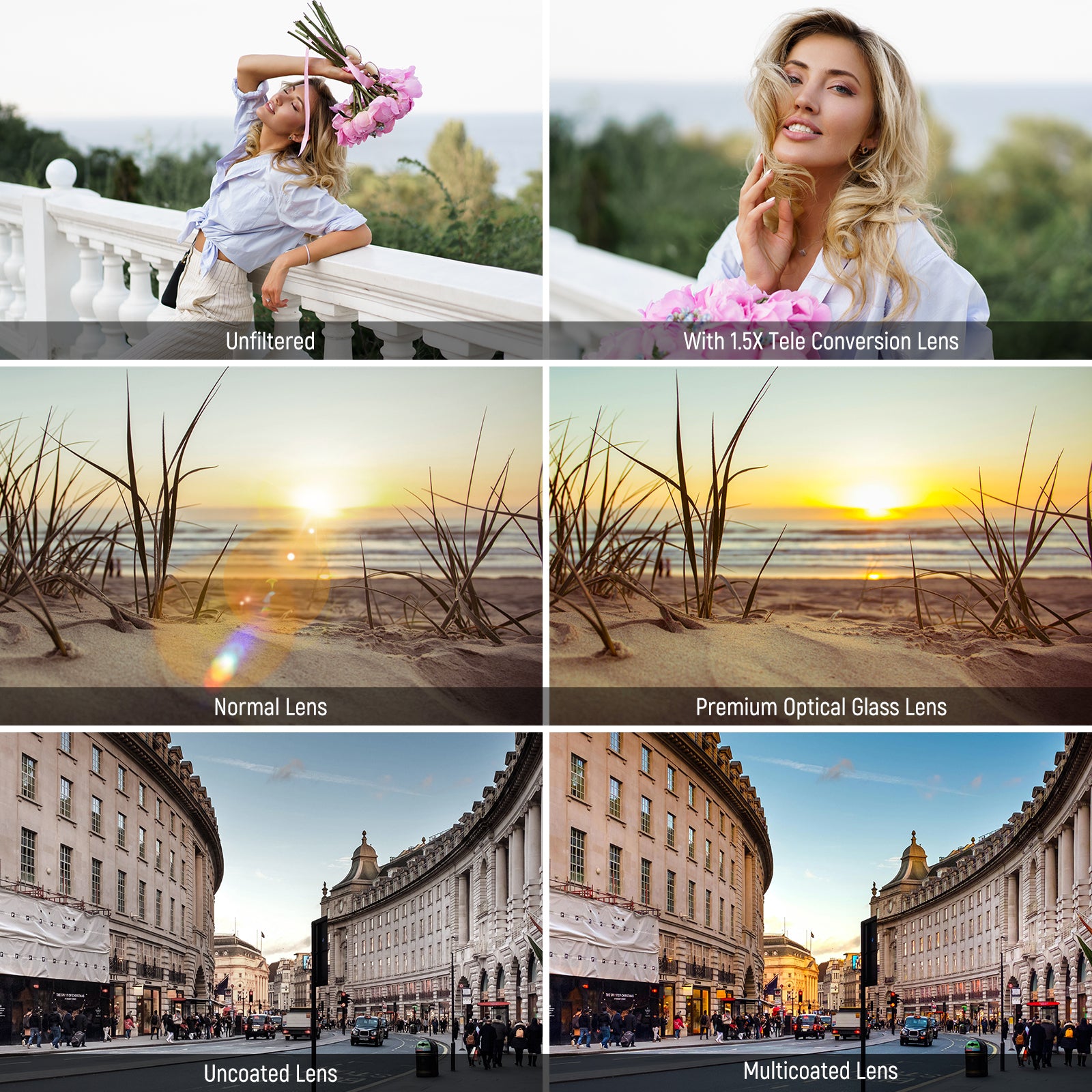• Multi Coated Optical Glass- The 1.5x Tele conversion extends focal length while preserving image clarity and detail, delivering crisp, true to life colors