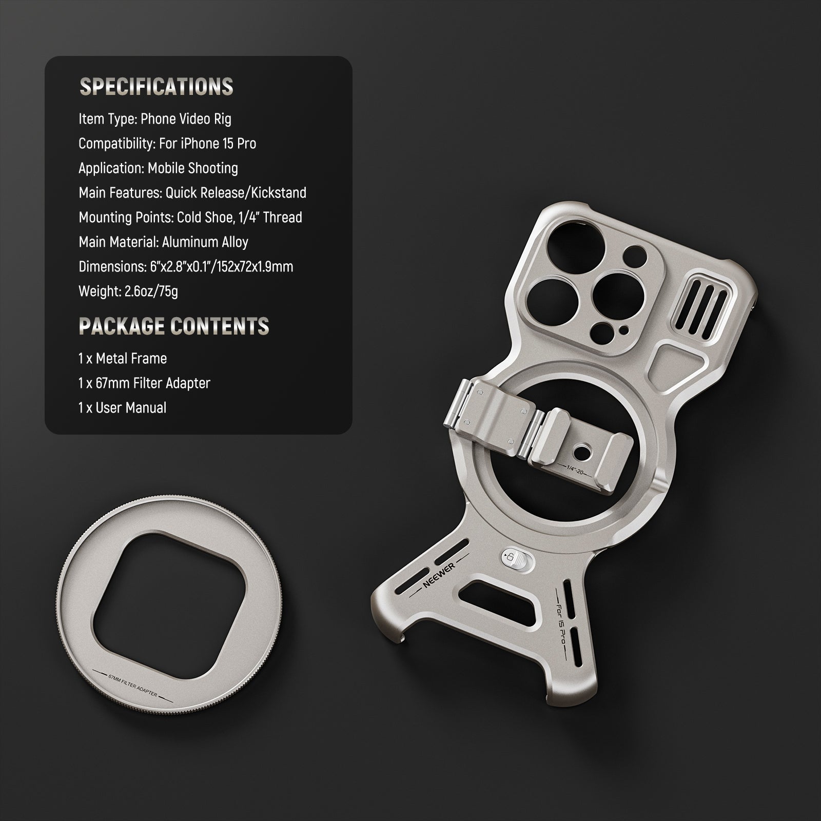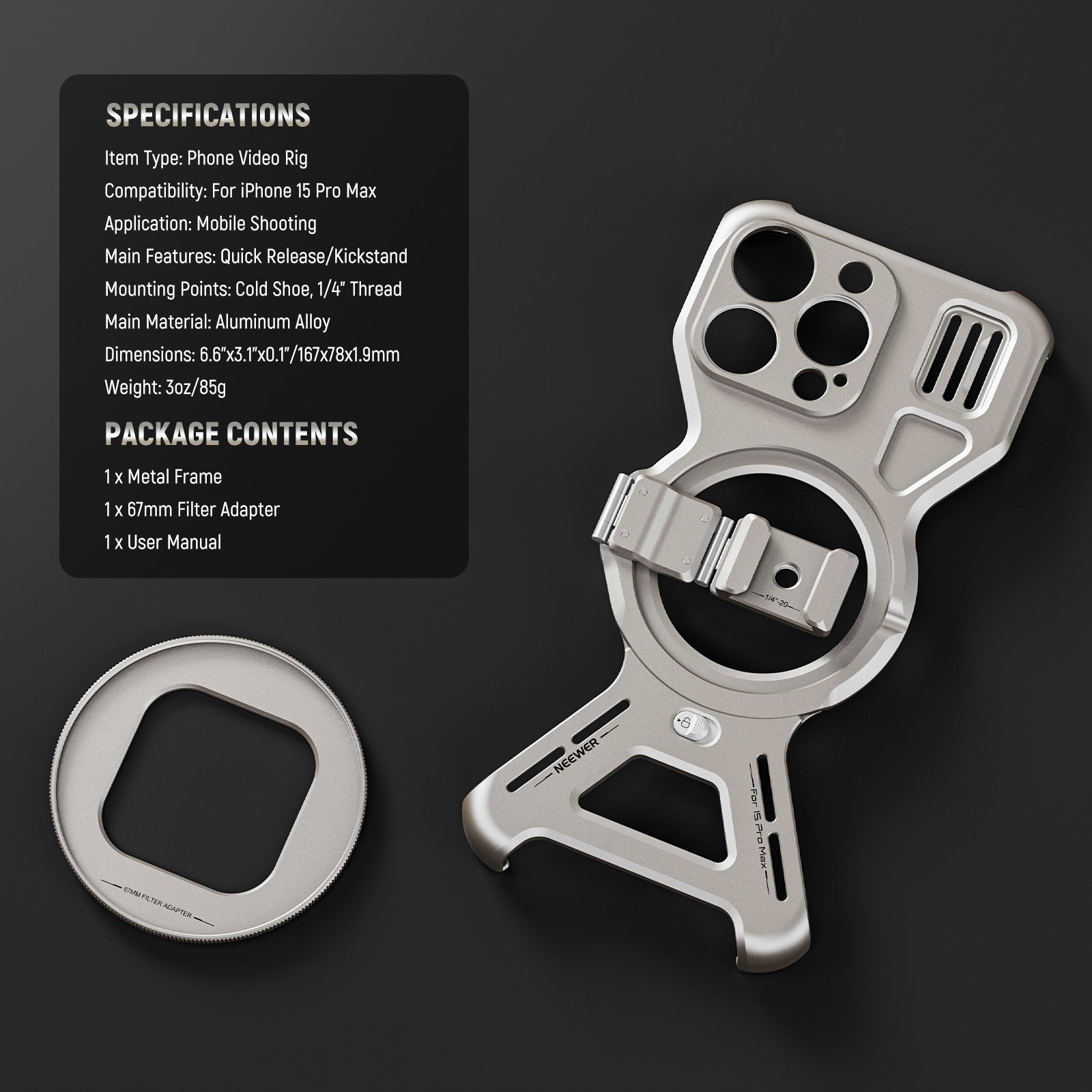 NEEWER PA067/PA068 LiteArmor Metal Frame Video Rig for iPhone 15 Pro/Pro Max