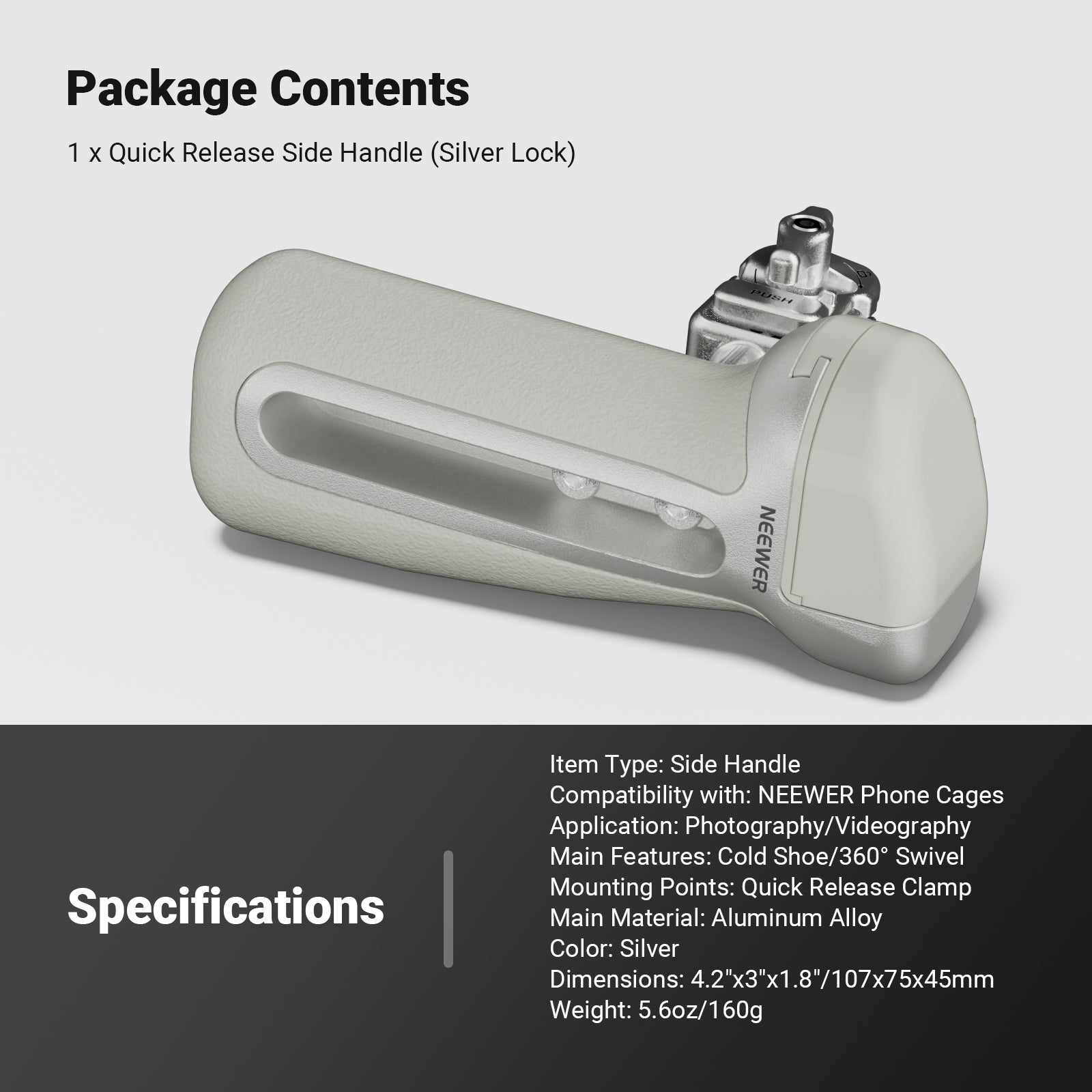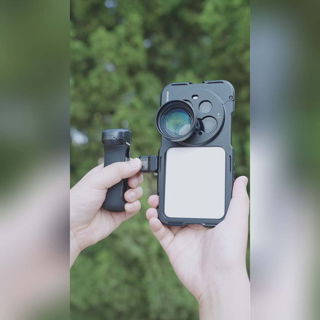 - For NEEWER Phone Cages- Quick release side handle fits NEEWER phone cage stabilizers with QR mounting slots compatible with iPhone 17 Pro, 17 Pro Max, iPhone 16 Pro, 16 Pro Max, S25 Ultra, S24 Ultra, and more