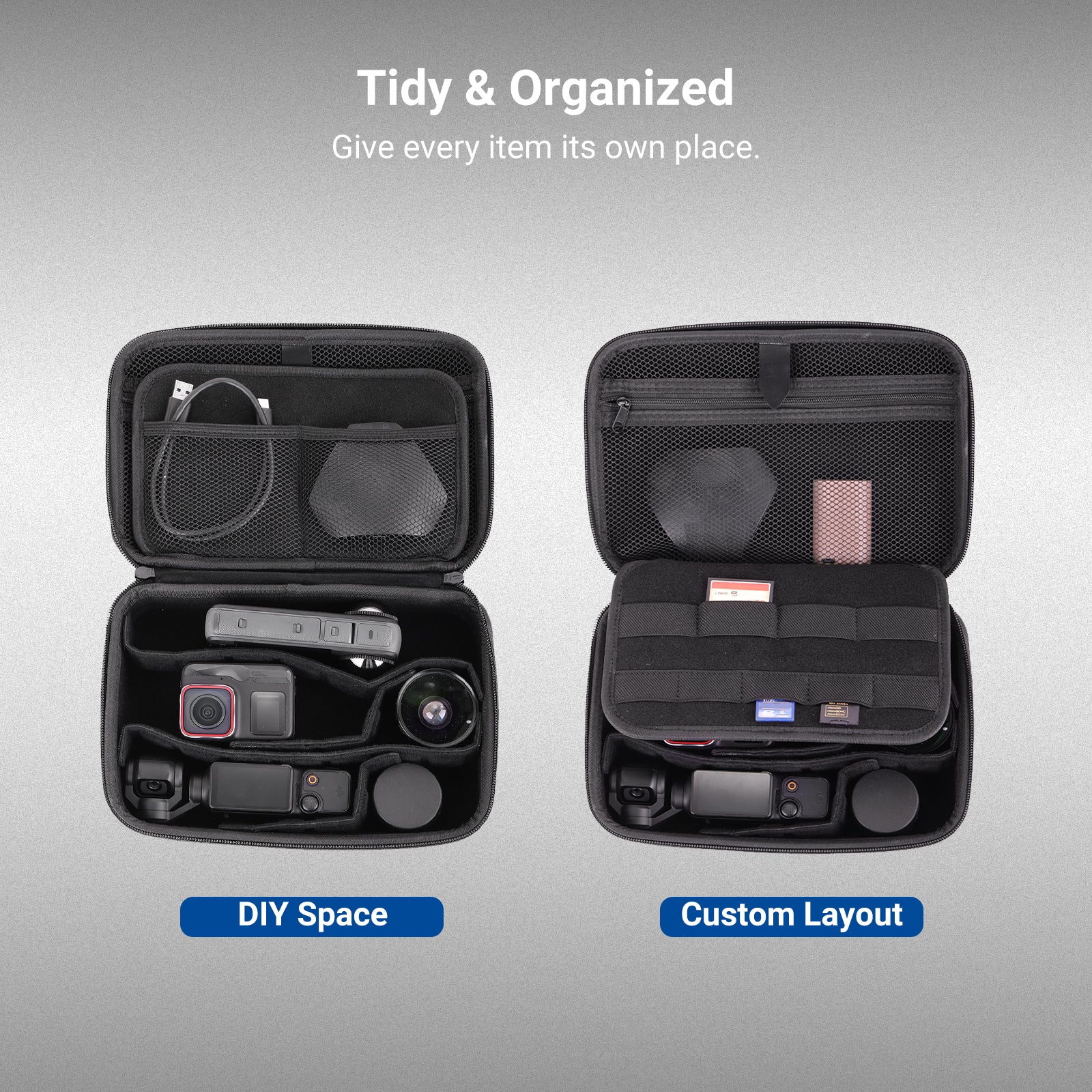 - Versatile Storage Case- Simultaneously stores multiple action cameras and keep them safe and organized. Compatible with GoPro Hero 13 Go Pro 12 11 Black DJI Osmo 360 Action 6 5 Pro 4 Pocket 3 and NEEWER 17mm phones lens accessories