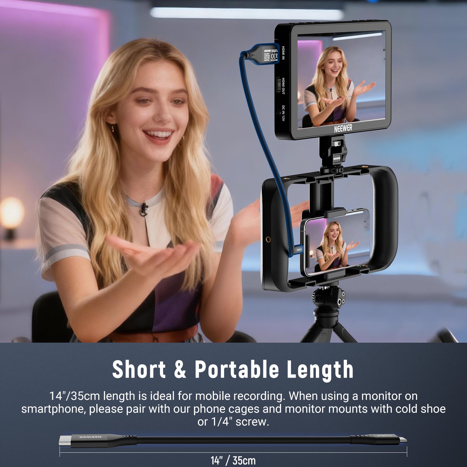 - Ideal for Mobile Recording- Portable size designed to elevate your mobile recording setup. When using a monitor on smartphone, please pair with our phone cages and monitor mounts with cold shoe or 1/4" screw