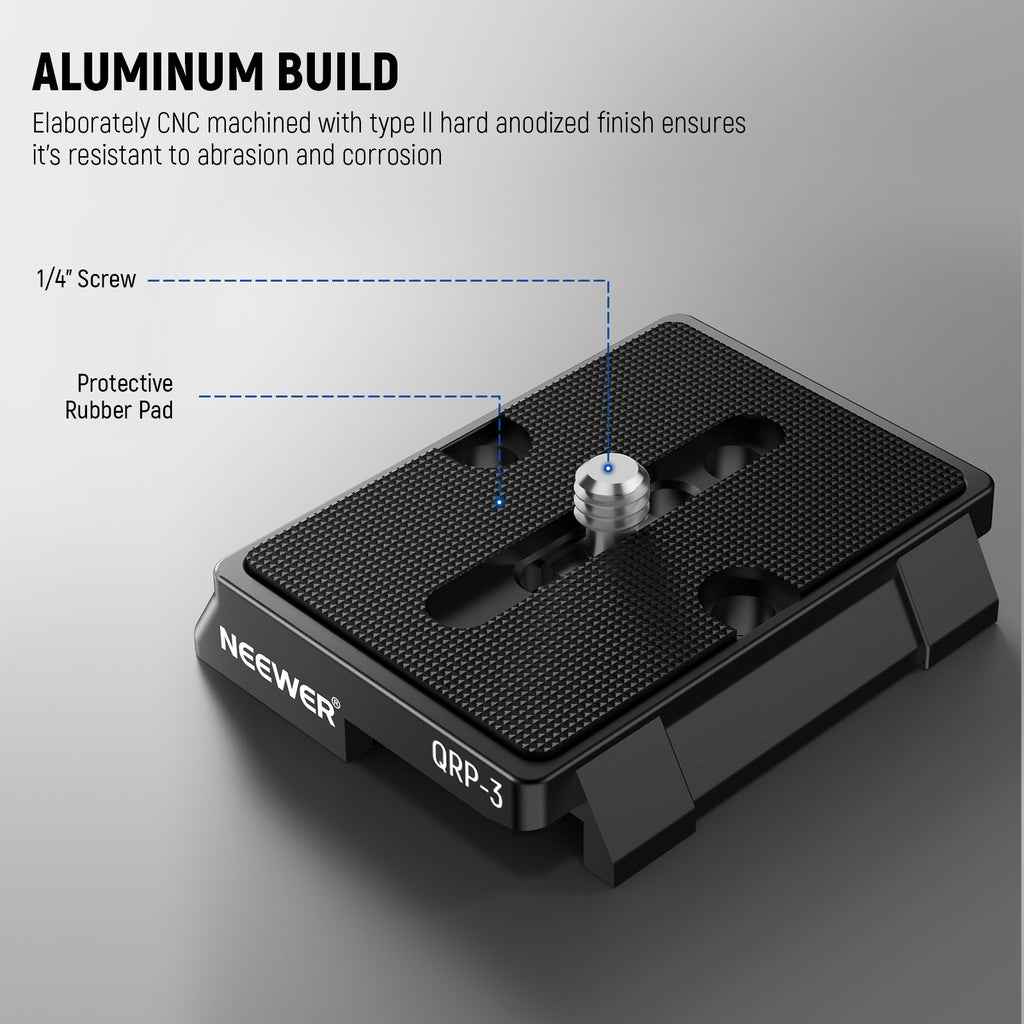 NEEWER quick release plates provide a fast and secure way to attach and detach cameras, camcorders, and other photography gear from tripods, sliders, and gimbals. Designed for stability and precision, these tripod mounting plates keep your equipment firmly in place while allowing effortless setup and adjustments. Made from durable, high-quality materials, our quick release plates deliver long-lasting performance for both studio and on-location shoots. Explore our collection to find the perfect camera mounting plate for your workflow.