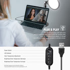 - Easy Charging via USB- The 10W desktop phone selfie light operates at 5V/2A, with a built in 6.2ft/1.9m charging cable, can be powered by the adapter or charged via USB ports displays, monitors, laptops, computers, or portable chargers, ensuring uninterrupted power throughout the day, during webcam video conferencing. Note: When connected, a blue LED indicator will light up. Then press ON/OFF button to turn the circular panel ring light on or off