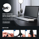 - Phone Holder Included- The desktop ringlight comes with a 2.4"-3.7"/ 6-9.5cm adjustable phone holder accessory, compatible with iPhone 16 15 Pro Max Plus 14 13 Mini Samsung Galaxy S24 S23 S22 Ultra Google Pixel 9 8 7 Pro Huawei and other smartphones. Easily adjust the phone holder on the telescopic rod of the tabletop selfie ring light stand to the desired height and secure it in place for seamless switching between vertical and horizontal shooting modes