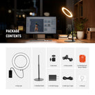 - Compact and Portable- This small lightweight LED desk stand phone ringlight kit compatible with iPhone. Desk ring light with stand, key light or soft fill light, selfie ring light, makeup light for makeup artist, Zoom lighting for computer, video podcast lighting, laptop light for video conference and calls, social media vlogs, streaming, etc.