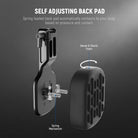 • Self Adjusting Back Pad- A spring loaded mechanism allows the back pad to automatically contour to your body based on pressure and contact. With 55mm of horizontal adjustment, it adapts to various body types for enhanced comfort and fit