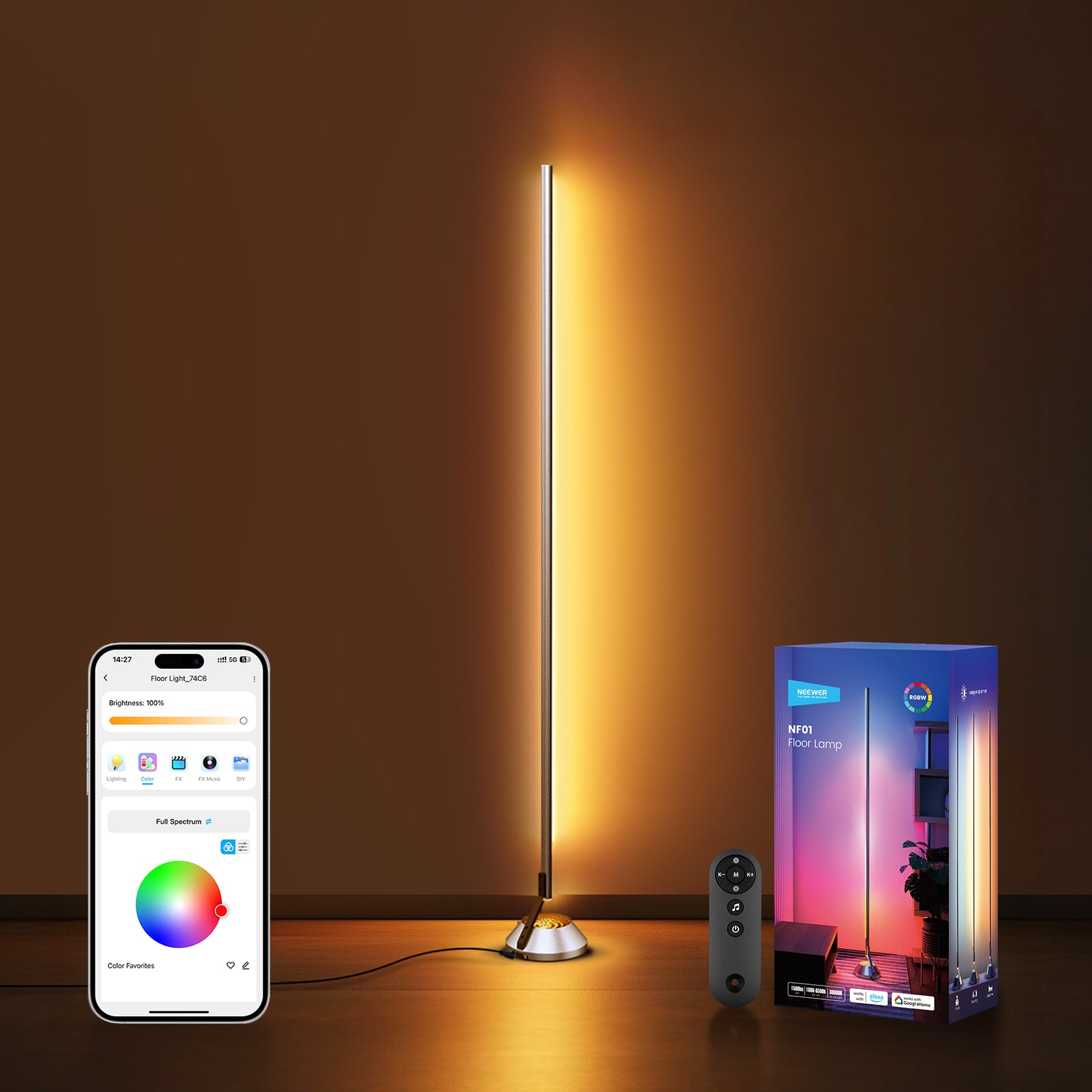 - Smart RGBW Floor Lamp with AI Lighting Creation- NEEWER NF01 features a tall, sleek, minimalist design, delivering 16 million colors, from cozy warm tones to dynamic lighting effects, to suit various scenarios. Powered by the NEEWER Smart AI Lighting Engine, it allows users to generate personalized lighting scenes simply by sending voice commands, text, or images, bringing the joy of smart living in the AI era right into your home and making the NF01 more distinguished from other brands